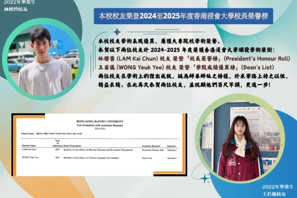 本校校友榮登2024至2025年度香港浸會大學校長榮譽榜