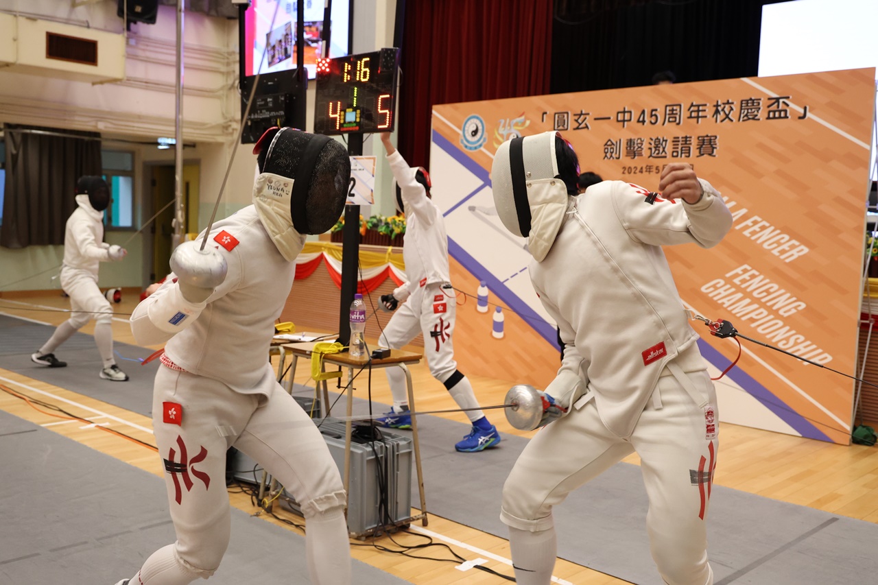 「圓玄一中45周年校慶盃」劍擊比賽於5月11日在本校禮堂舉行,賽事開設男女子小學、中學及公開組,讓不同水平階段的劍擊愛好者,都有發揮劍藝的機會。比賽按劍擊總會之規例進行,初賽以抽籤方式分組進行單循環賽,決賽則採用淘汰制,所有賽事均邀請專業裁判擔任裁決,並且由本校劍擊隊及數碼領袖同學擔當「劍擊大使」,在比賽場地接待參賽來賓及拍攝相片。賽事合共接待了百多位報名學生參加,場面盛大。