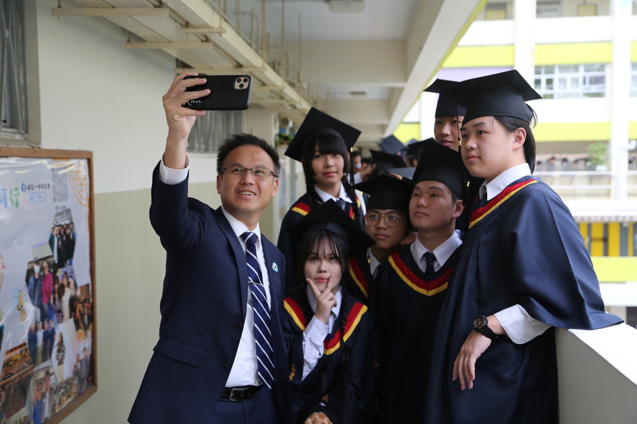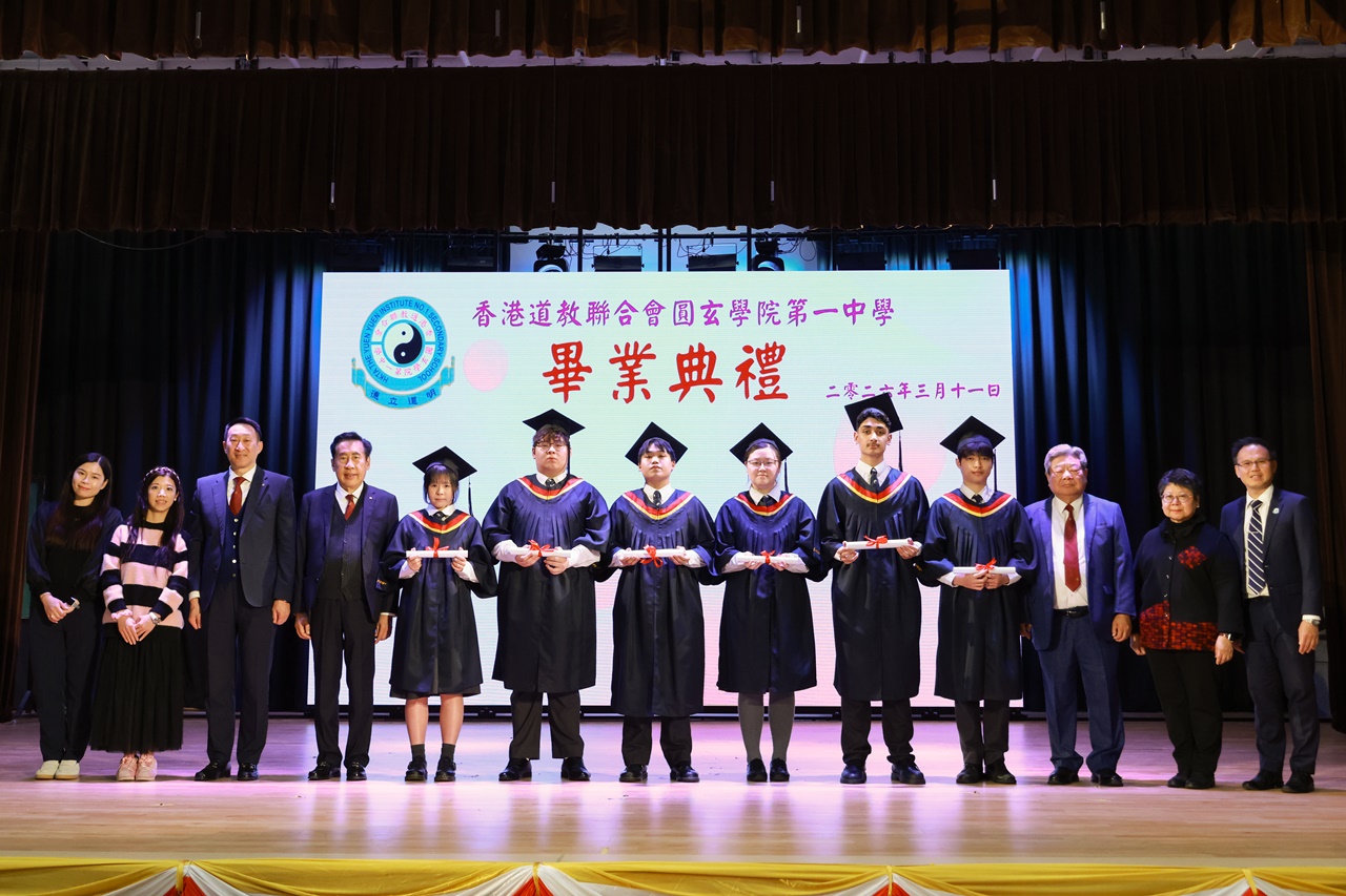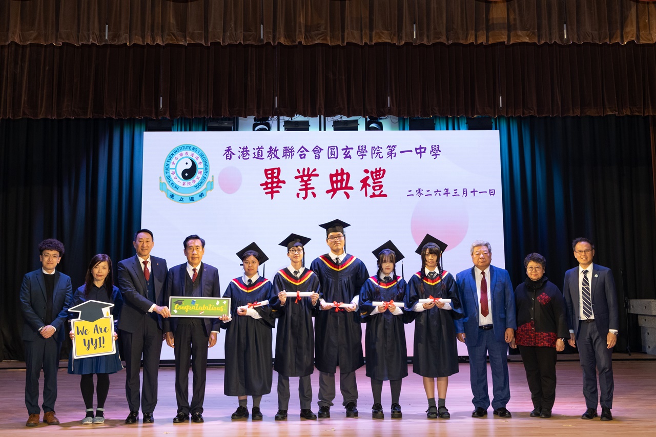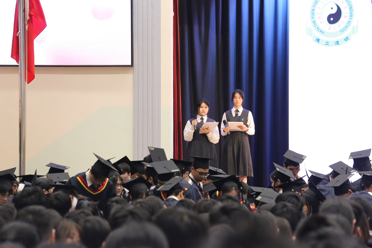 本校特地於中六級的最後一天上學日,在校內舉行畢業典禮,讓全體師生為畢業班同學送上祝福。典禮於3月11日下午在禮堂舉行,當日有幸邀得校監鄧錦雄博士BBS MH蒞臨典禮,親自為畢業同學授憑勉勵,令典禮倍添意義。圓玄學院主席陳國超先生BBS MH JP、蔡小勇校董、文靜芬校長及全體師生均參與其中,一同見證盛事。此外,多位畢業生的家長應邀出席典禮,親自見證子女完成中學階段,邁進人生的新里程。