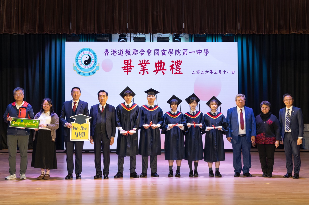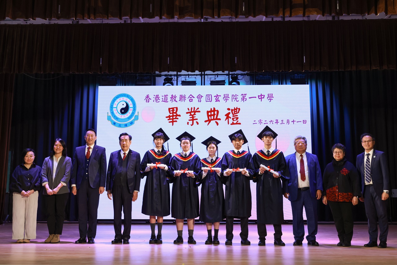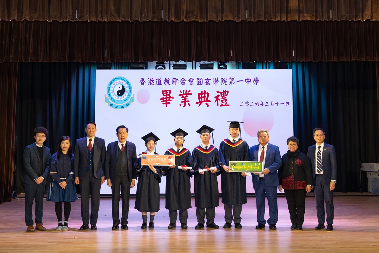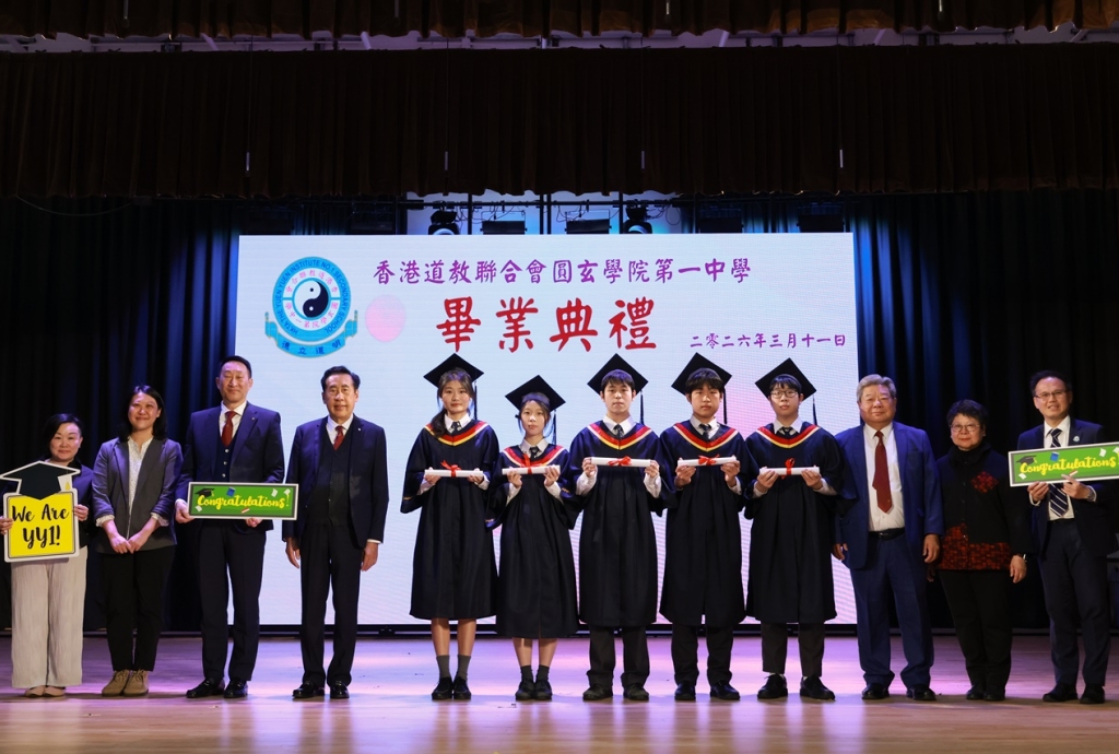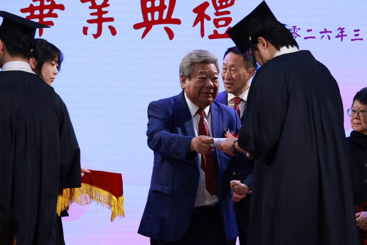 本校特地於中六級的最後一天上學日,在校內舉行畢業典禮,讓全體師生為畢業班同學送上祝福。典禮於3月11日下午在禮堂舉行,當日有幸邀得校監鄧錦雄博士BBS MH蒞臨典禮,親自為畢業同學授憑勉勵,令典禮倍添意義。圓玄學院主席陳國超先生BBS MH JP、蔡小勇校董、文靜芬校長及全體師生均參與其中,一同見證盛事。此外,多位畢業生的家長應邀出席典禮,親自見證子女完成中學階段,邁進人生的新里程。