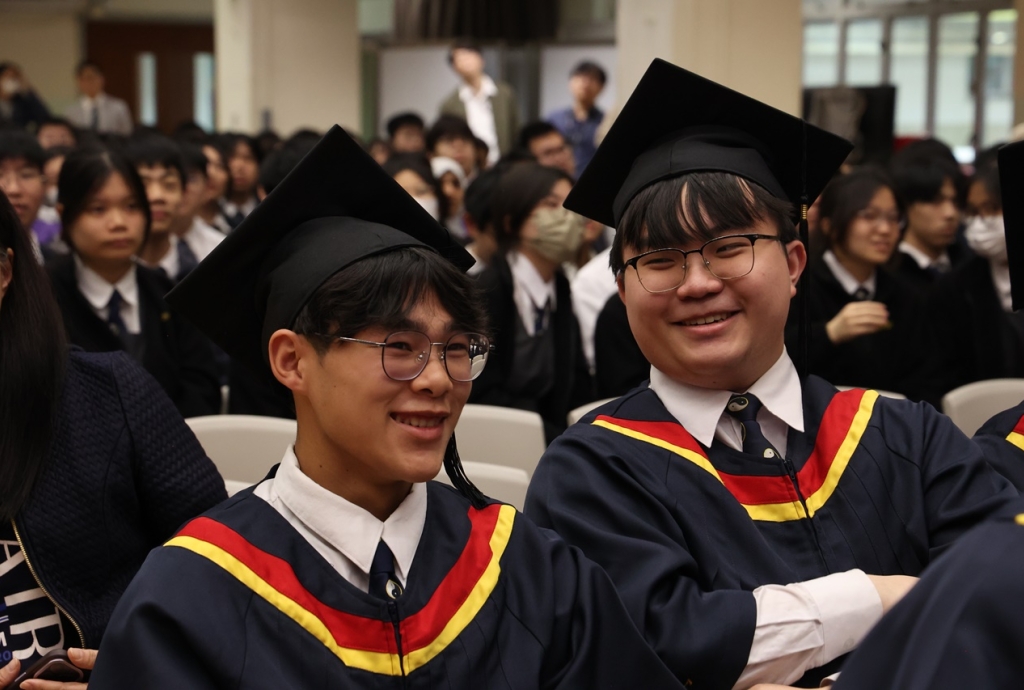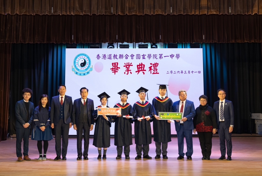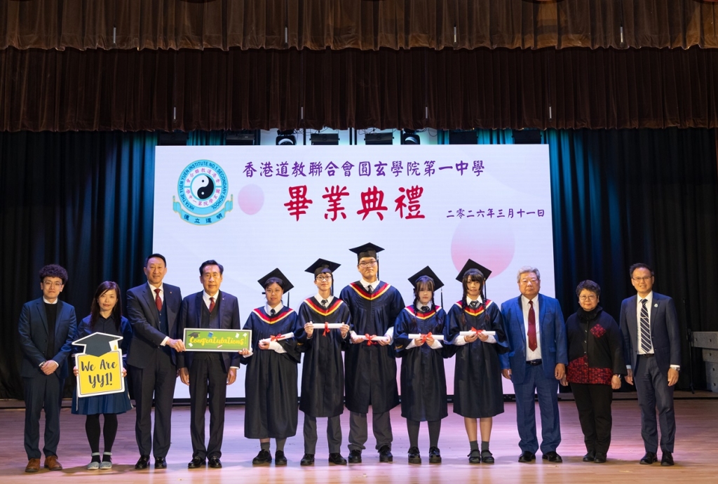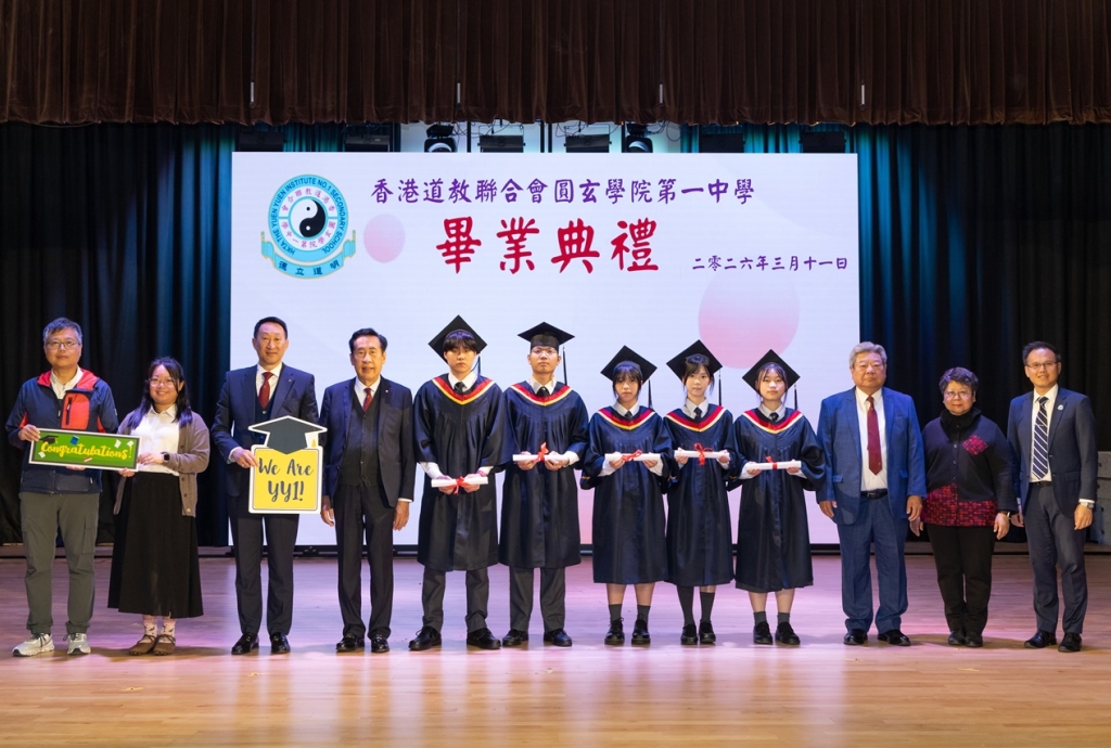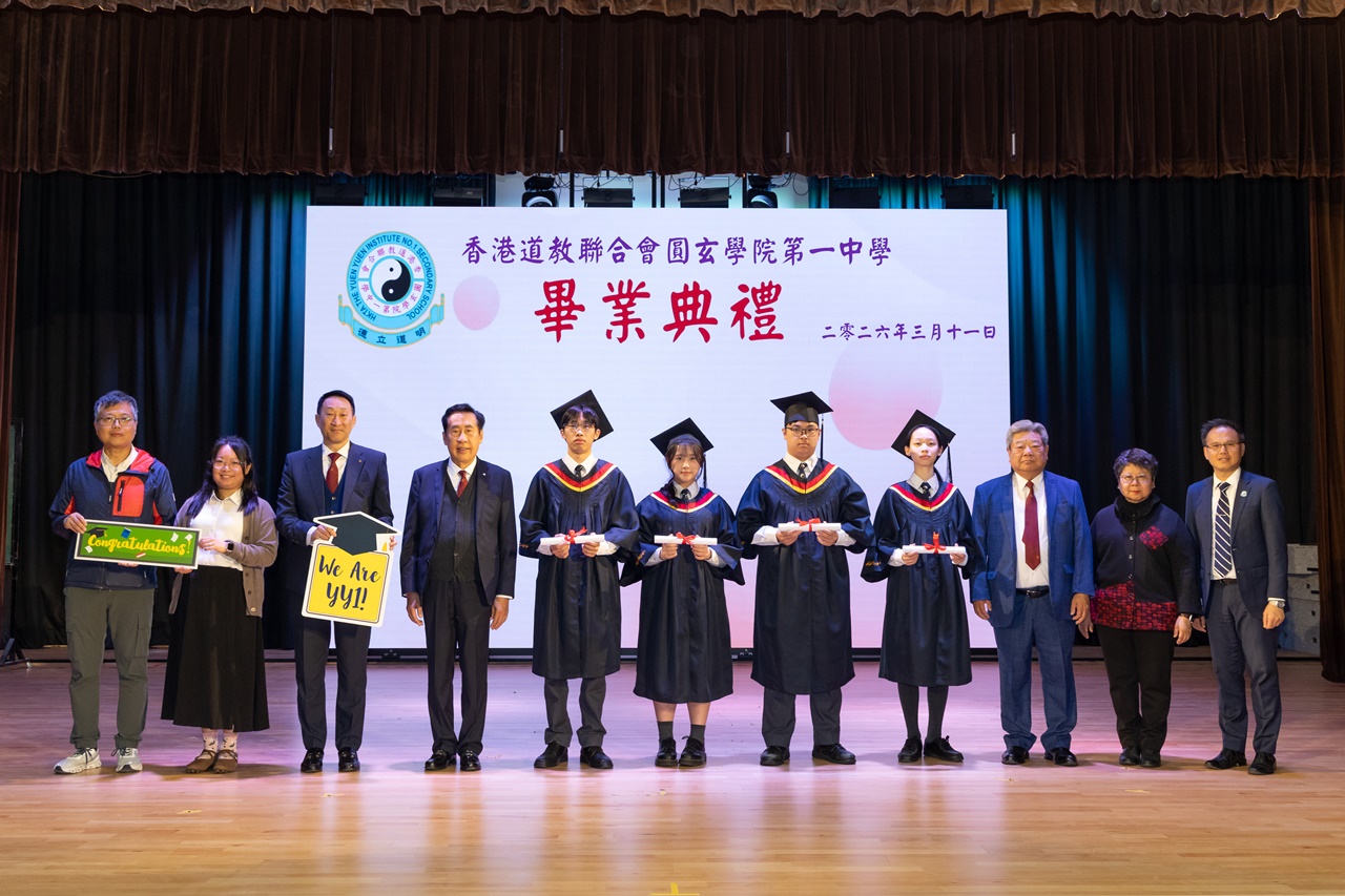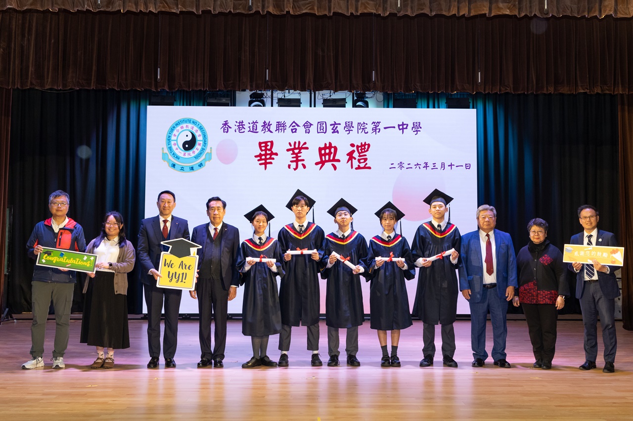 本校特地於中六級的最後一天上學日,在校內舉行畢業典禮,讓全體師生為畢業班同學送上祝福。典禮於3月11日下午在禮堂舉行,當日有幸邀得校監鄧錦雄博士BBS MH蒞臨典禮,親自為畢業同學授憑勉勵,令典禮倍添意義。圓玄學院主席陳國超先生BBS MH JP、蔡小勇校董、文靜芬校長及全體師生均參與其中,一同見證盛事。此外,多位畢業生的家長應邀出席典禮,親自見證子女完成中學階段,邁進人生的新里程。