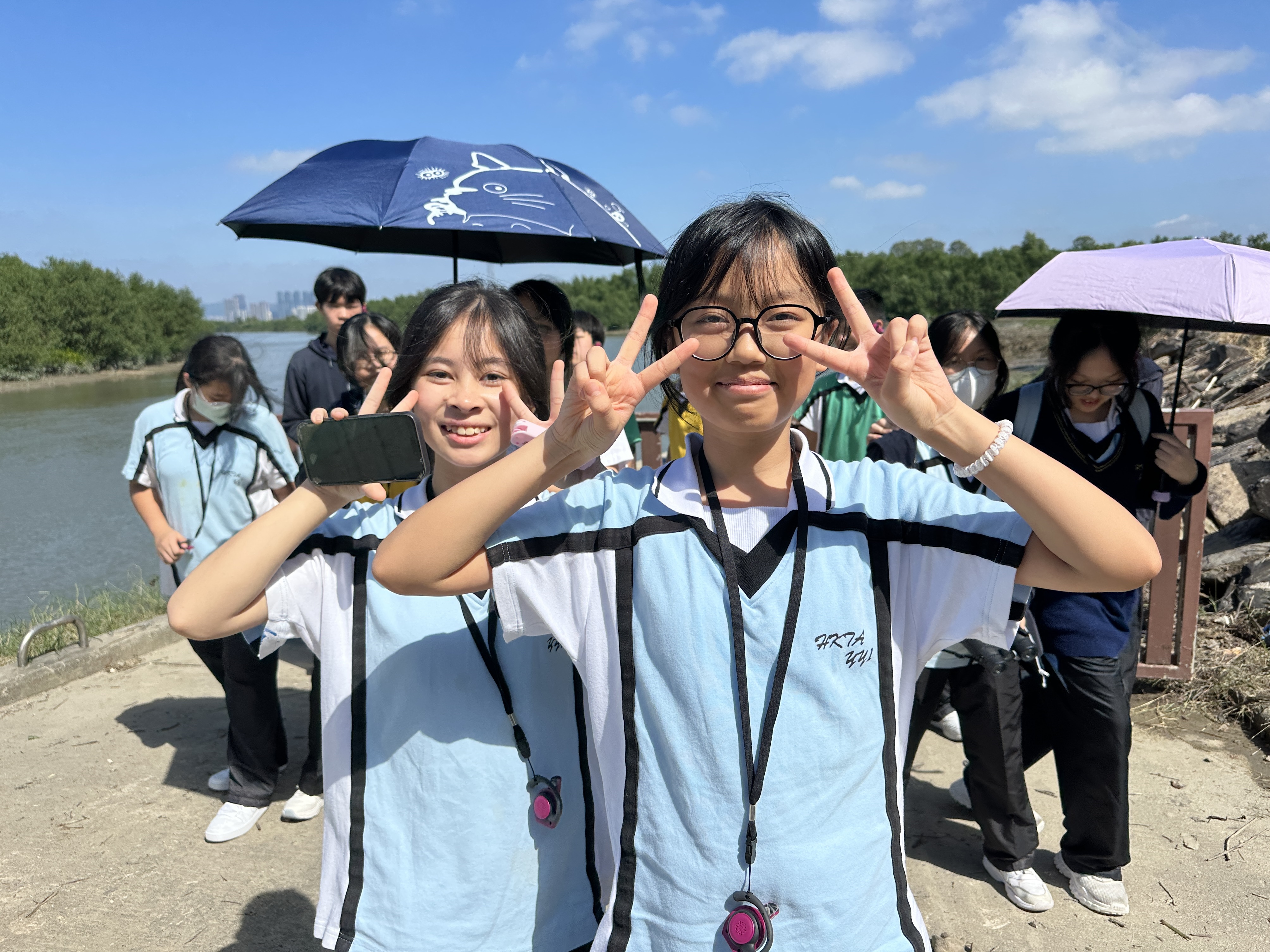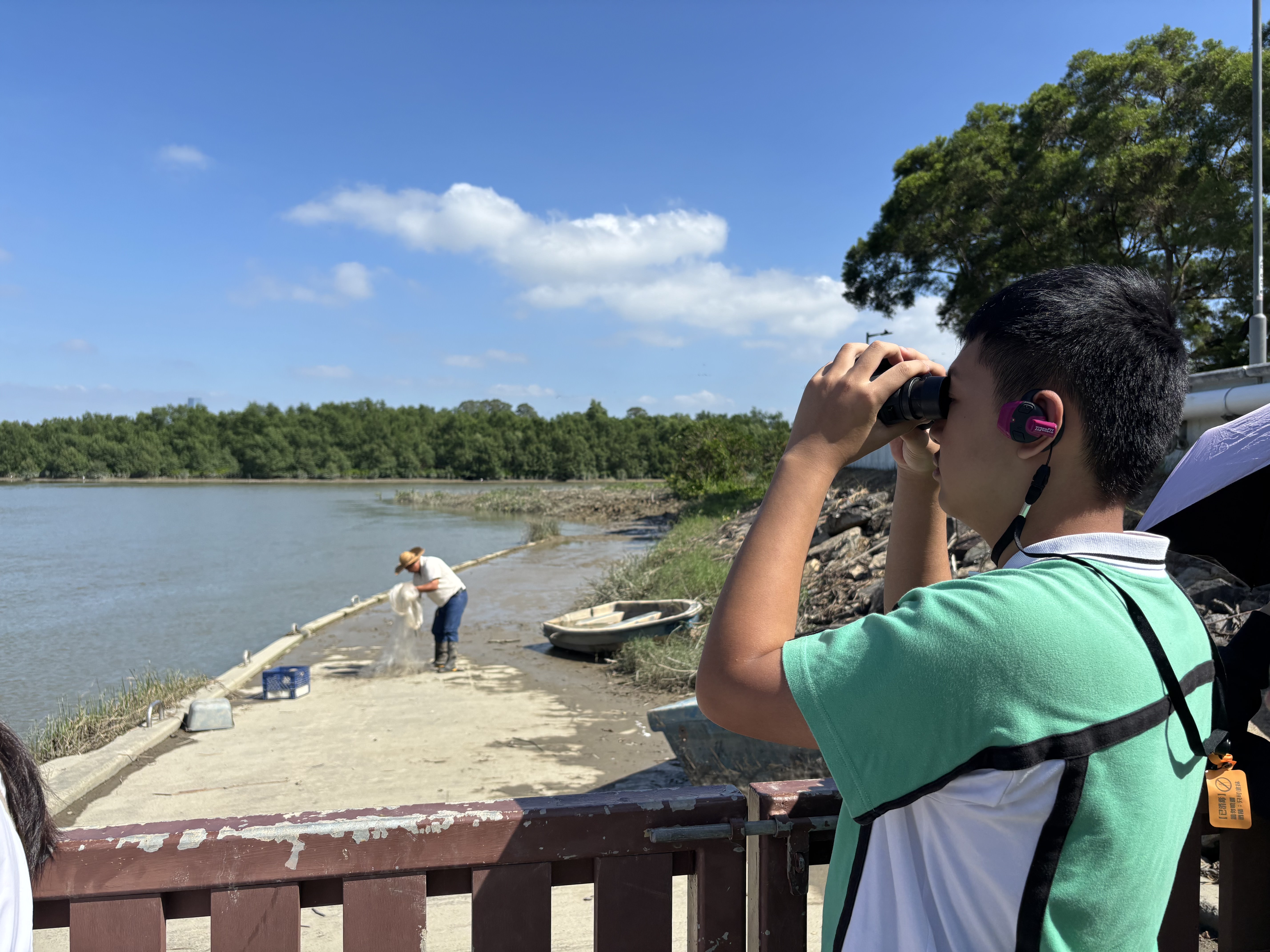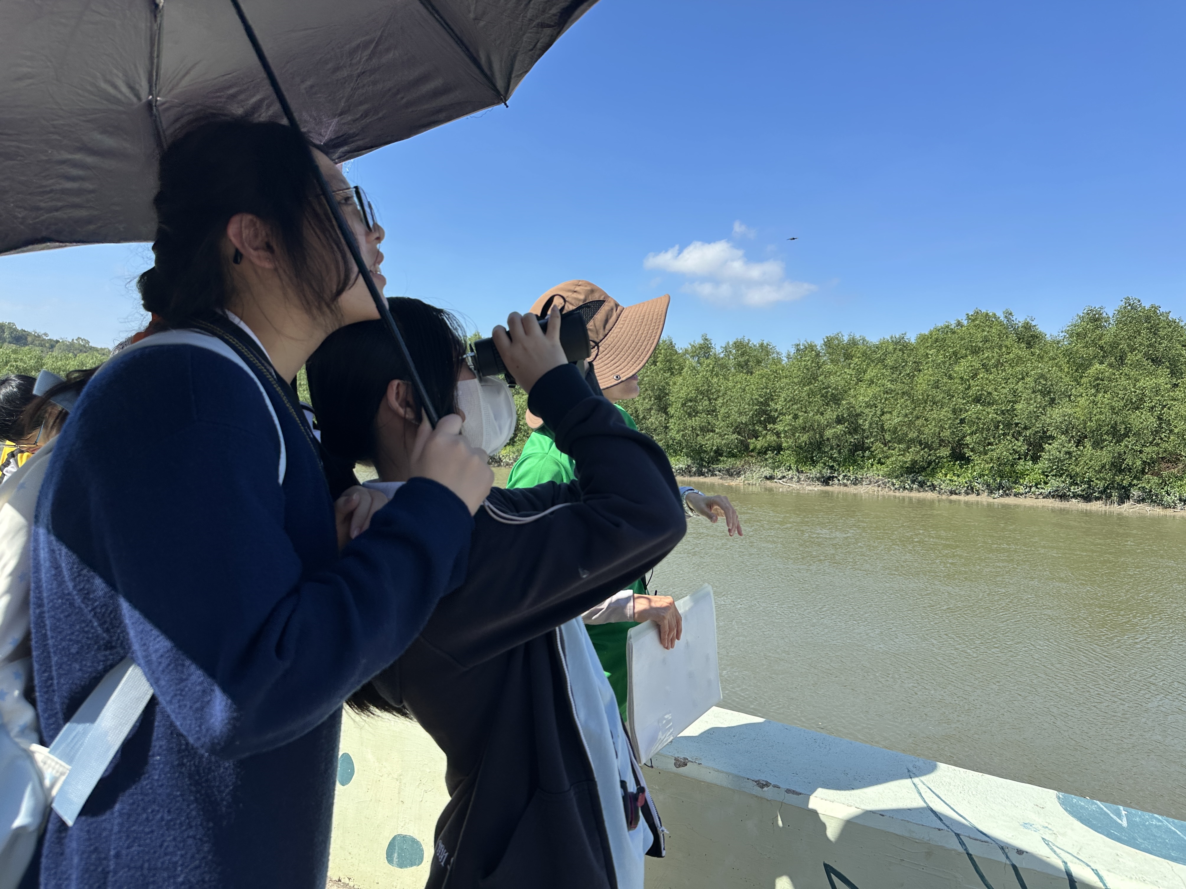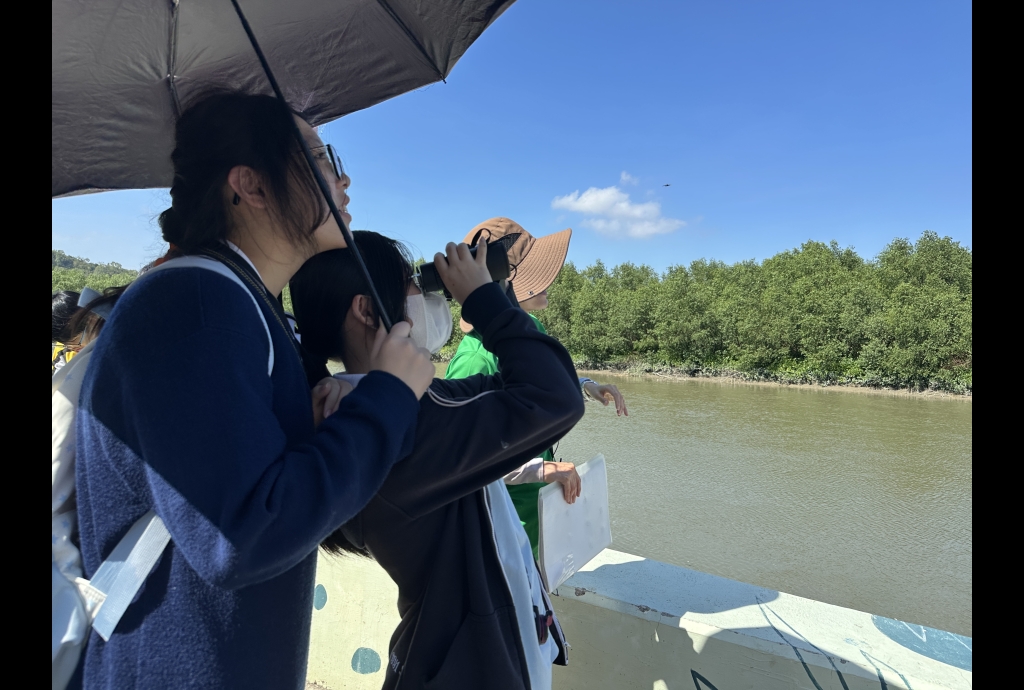 活動首先參觀新田雨水泵房和元朗排水繞道氣墊壩,學生親身觀察大型防洪設施的運作,認識其在防止水浸及保護市區安全中的重要作用。隨後隊伍前往南生圍紅樹林及錦田河河口進行生態觀察,了解紅樹林在維持濕地生物多樣性與淨化水質方面的功能。同學們積極發問,特別在錦田河河口的觀鳥及觀看捕魚時反應熱烈。同學初次親眼看到漁民以傳統方式撒網捕魚,感受到大自然生態和人類生活的密切連結。活動拓闊了他們對濕地及河口生態的認知,增進了對本地生物多樣性及保育工作的理解。