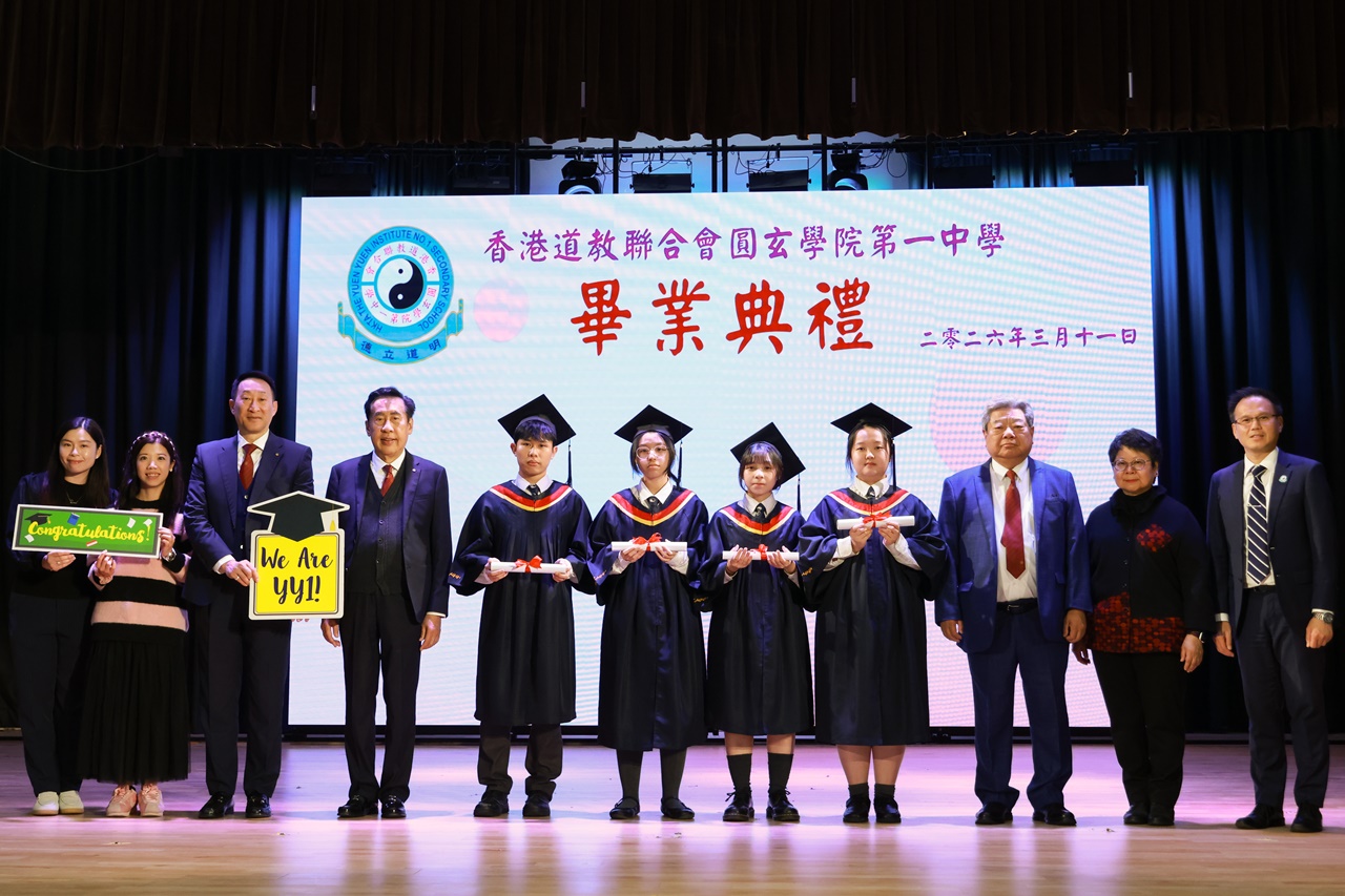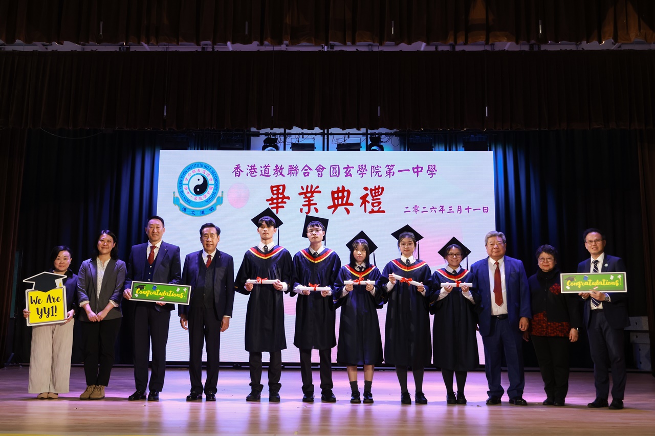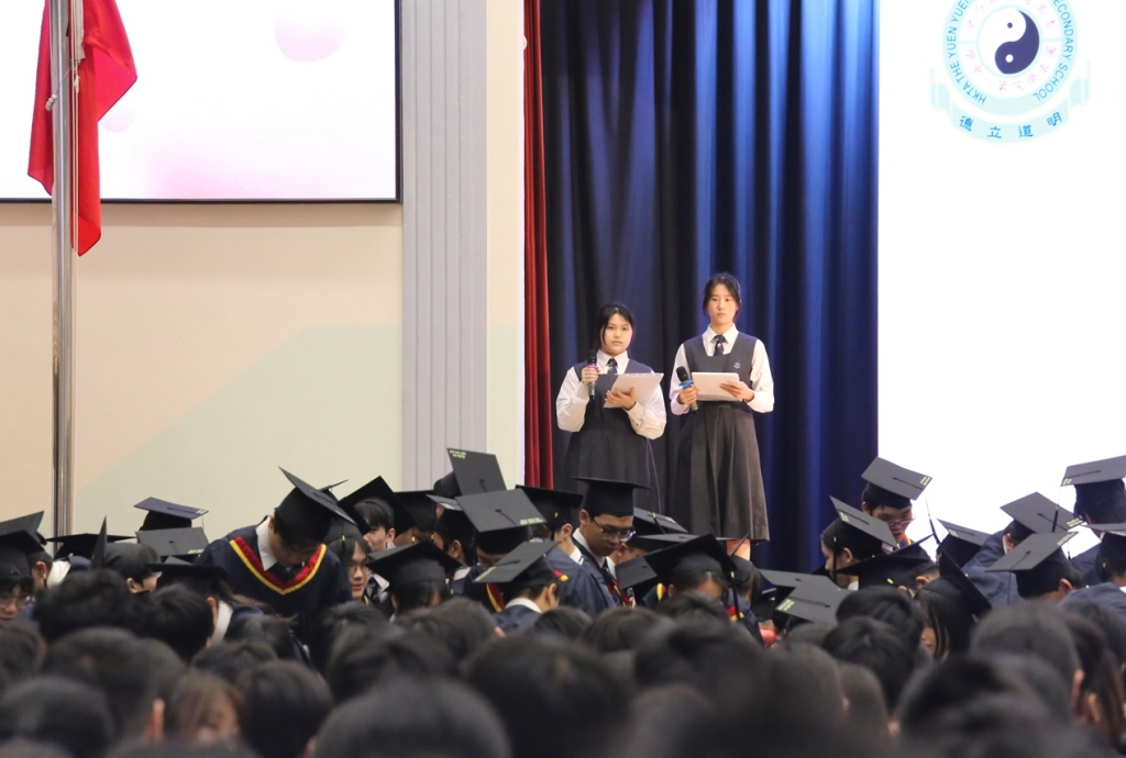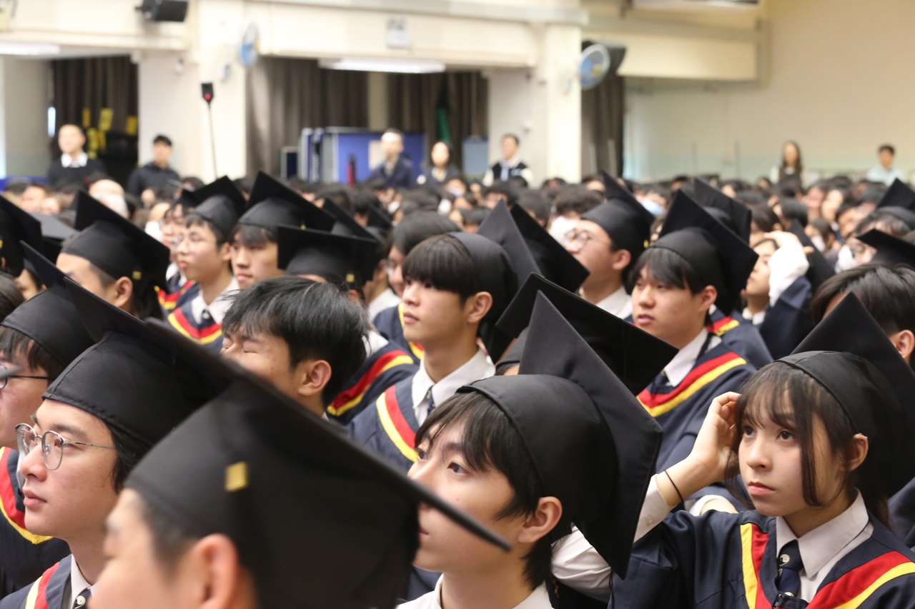 本校特地於中六級的最後一天上學日,在校內舉行畢業典禮,讓全體師生為畢業班同學送上祝福。典禮於3月11日下午在禮堂舉行,當日有幸邀得校監鄧錦雄博士BBS MH蒞臨典禮,親自為畢業同學授憑勉勵,令典禮倍添意義。圓玄學院主席陳國超先生BBS MH JP、蔡小勇校董、文靜芬校長及全體師生均參與其中,一同見證盛事。此外,多位畢業生的家長應邀出席典禮,親自見證子女完成中學階段,邁進人生的新里程。