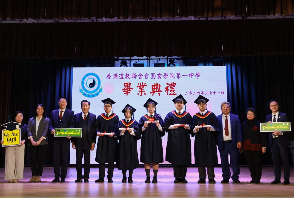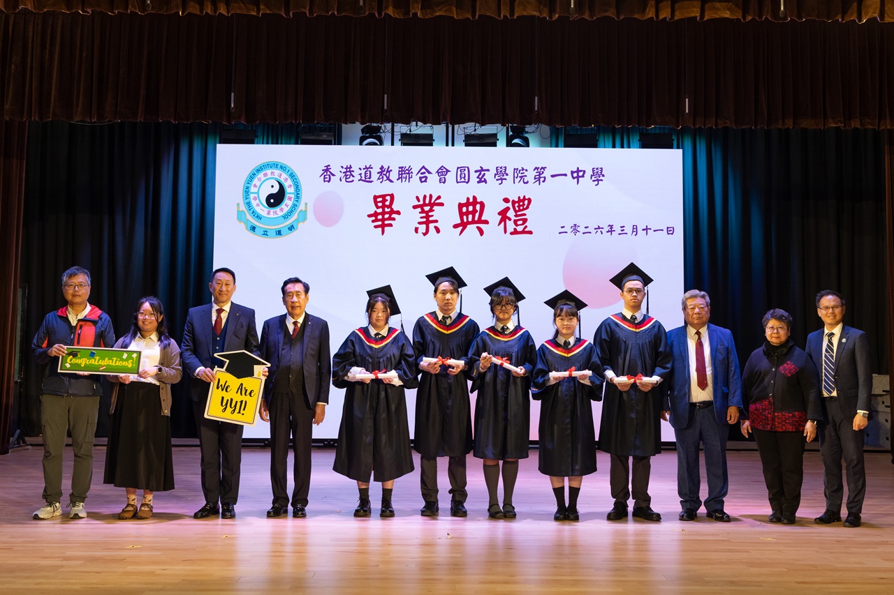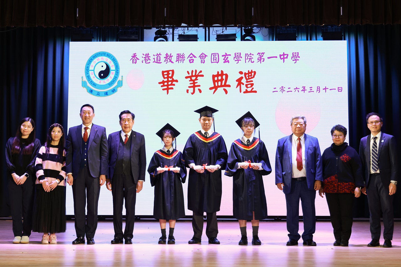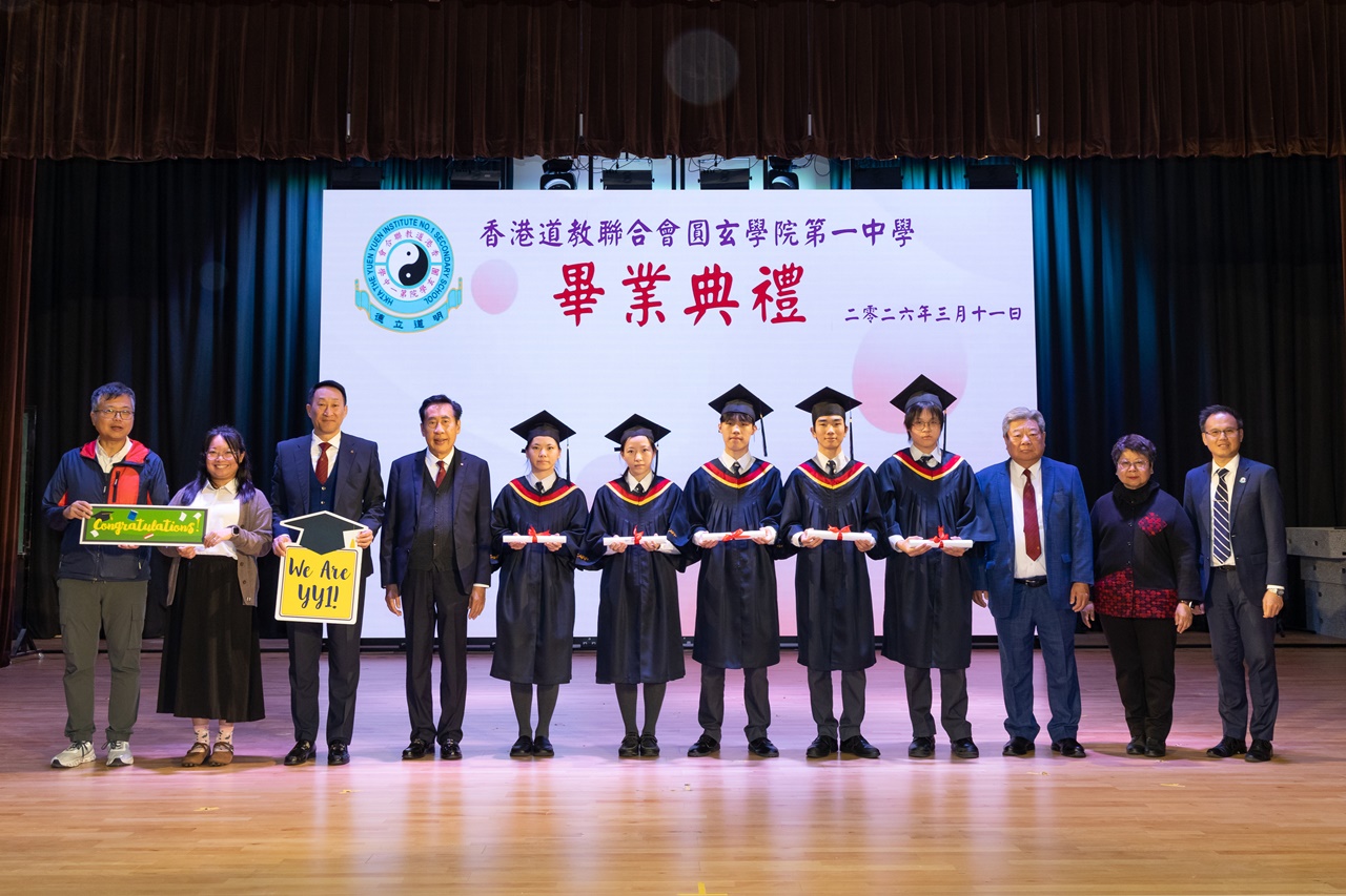 本校特地於中六級的最後一天上學日,在校內舉行畢業典禮,讓全體師生為畢業班同學送上祝福。典禮於3月11日下午在禮堂舉行,當日有幸邀得校監鄧錦雄博士BBS MH蒞臨典禮,親自為畢業同學授憑勉勵,令典禮倍添意義。圓玄學院主席陳國超先生BBS MH JP、蔡小勇校董、文靜芬校長及全體師生均參與其中,一同見證盛事。此外,多位畢業生的家長應邀出席典禮,親自見證子女完成中學階段,邁進人生的新里程。